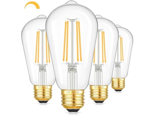 - Super High Brightness&Eye-caring: With a 360degree wide beam angle and 400lumens high performance, our clear dimmable LED light bulbs illuminate larger area in your space. You don't have to worry about dark corners at night anymore. Emitting a 2700K gentle warm light with no flickering, buzzing, or harsh glare, these ST58 dimmable LED bulbs prioritize eye comfort. The 40watt ST58 LED filament bulbs ensure a pleasant ambiance while powerfully protect your family's eyesight