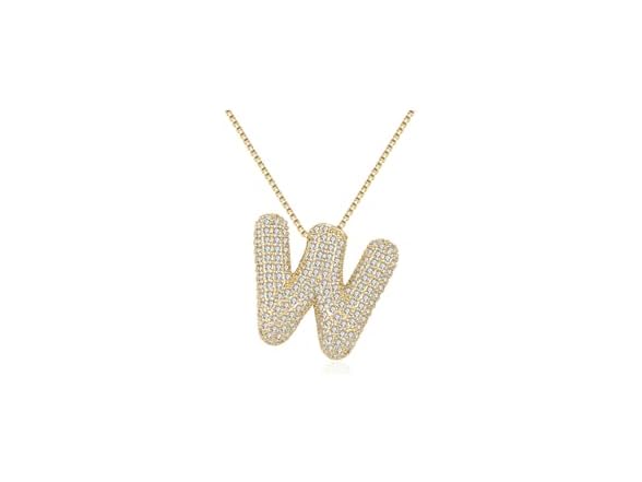 - (1) DIOWUS Bubble Letter Necklace Gold for Women,Charm Balloon Initial Letter Pendant Zirconia Inlaid Necklaces Fashion Gifts Jewelry