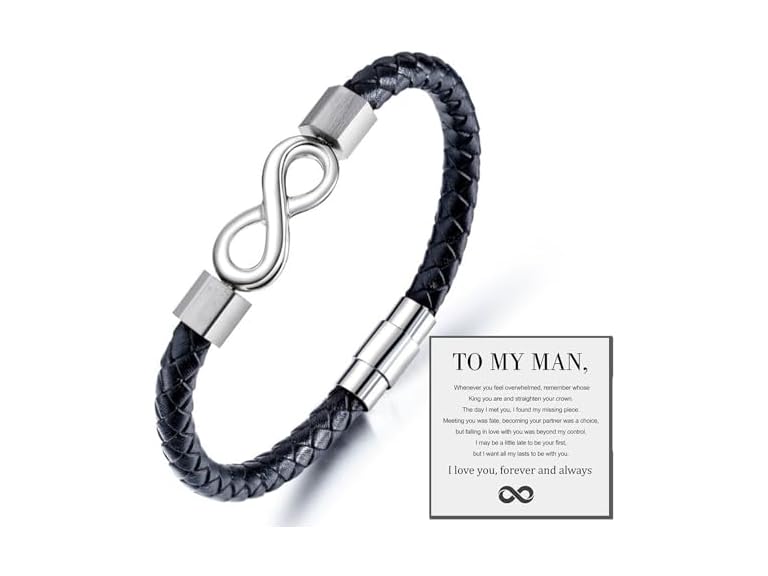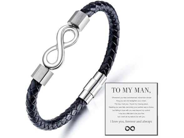 - (1) DIOWUS To My Man Infinity Bracelet, Leather Infinity Knot I Love You Forever And Always Bracelet Husband Gifts From Wife Anniversary Birthday Christmas Boyfriend Fathers Gifts For Men