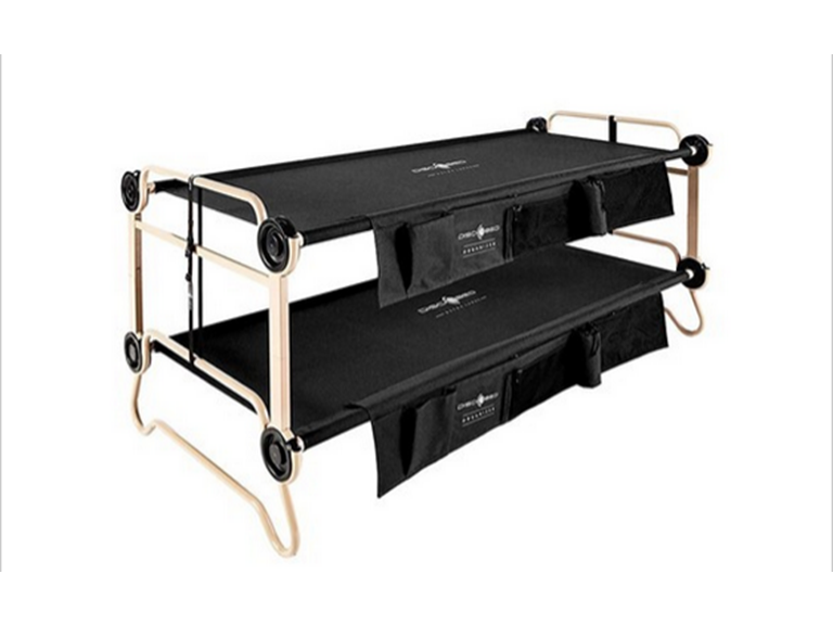 Includes 2 Side Organizers that has 8 convenient open and zippered pockets – plenty of room for glass’s, water bottle, flashlight, book, etc, all within arms reach. Simply attach to the sleeping deck with the heavy duty velco and store in the bunk’s carry bags when not in use.