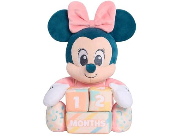 - Adorable Photo Prop: Adjust the blocks to show an important milestone (3 months, for example), then place the 11.5-inch Minnie Mouse plushie next to baby and capture the moment with a phone or camera.