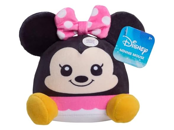 - Classic Disney Charm: This 5-inch, stylized Minnie Mouse plushie wears a pink skirt, polka dot bow tie, and yellow shoes.