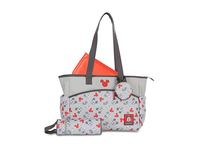 - Disney Diaper Tote Bag: Enjoy the functionality and appearance of this Disney diaper tote bag for moms; this wide tote holds all your baby girl or boy’s essentials in one place with a top zip closure and extra open side pockets for easy access to your most needed items.