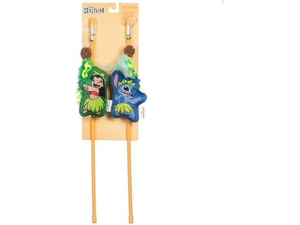 - (1) Disney for Pets Lilo and Stitch 2pk Feathered Wand Cat Toys with Catnip, Feather Teaser Set for Cats, Cute Kitty Toy Fans