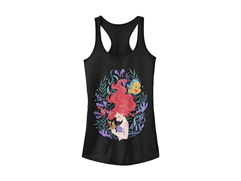 - (1) Disney Junior's Princess Leafy Ariel Slim Fit, Scoop Hem Racerback Tank, Black, Large