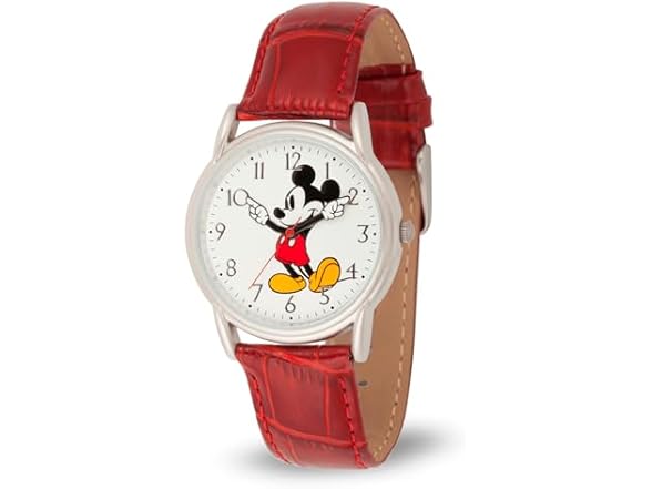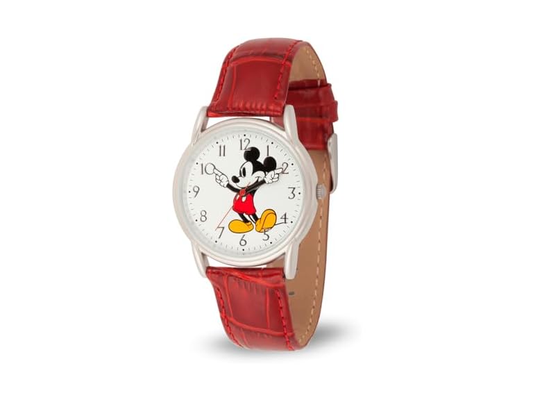 - Disney Mickey Watch - Watch for Men - Mickey Mouse Watches for Men - Toys - 90s Mouse - Vintage - 's Articulating Hands - Silver Case - Red Leather Strap