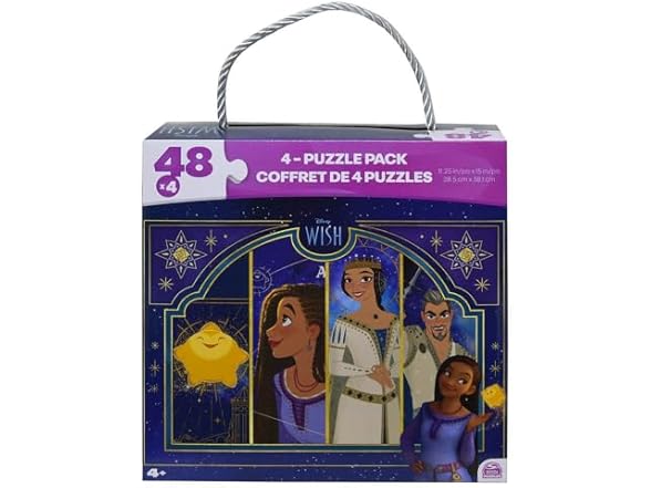 - Disney Wish 4-Pack 48-Piece Puzzle Set for Kids with Carrying Handle