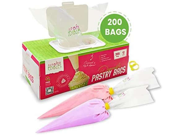 - TIRED OF NARROW AND MESSY SMALL ICING PIPING BAGS? At Craftit Edibles, We created our disposable frosting piping bags with a 9 inch, extra wide opening and 12" length for a piping bag disposable that holds more, while being easy to fill and use! our 200 small tipless piping bag make creating in the kitchen fun and simple.