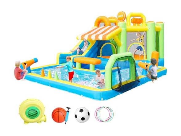 - 5.[Convenient To Use]:Our inflatable bounce house use less than two minutes can be turned into a complete water bounce house.After use, the bounce house can be quickly deflated, very convenient to use anywhere, storage do not occupy space.