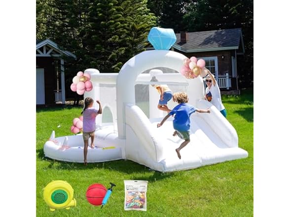 - 【【Promote Social Development】 The inflatable bouncy castle jumping slide is designed to enhance your child's social skills. Through bouncing and playing with siblings or friends, they learn to share, communicate, and cooperate. It's a valuable investment in your child's development and a fun way to nurture their social growth.