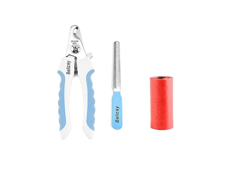 - (1) Belizay Dog & Cat Professional Pets Nail Clippers and Trimmers with Poop Bag Rolls Set, Cat and Dog Nail Clippers for Small Dogs with Safety Guard to Avoid Over Cutting. Large Size