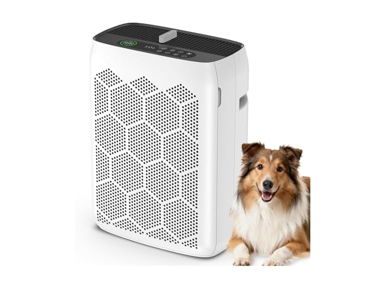 - SMART PM2.5 AIR QUALITY MONITOR & AUTO MODE: With a built-in PM2.5 air quality sensor and display, this HEPA air purifier continuously tracks indoor air in real time. Smart Auto Mode intelligently adjusts fan speed according to PM2.5 levels, delivering efficient purification while saving energy and maintaining optimal operation
