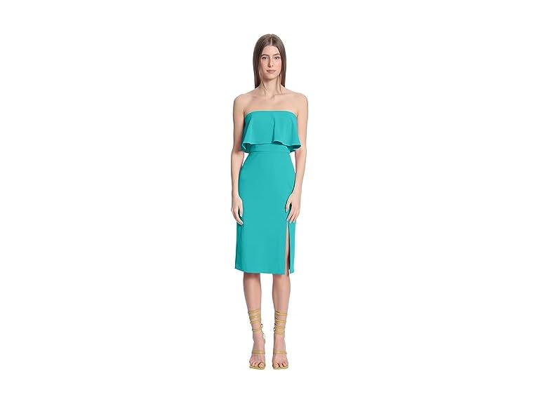 - (1) Donna Morgan Women's Strapless Flounce Top Dress with Side Front Skirt Slit, Spectra Green