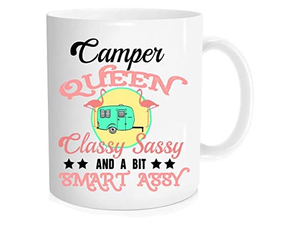 - (1) DOPHOME Funny coffee Mug - Camper Queen Classy Sassy And A Bit Smart Assy Mug - Inspirational gifts - Travelling Camper Beach Girls-11 oz Novelty Mug