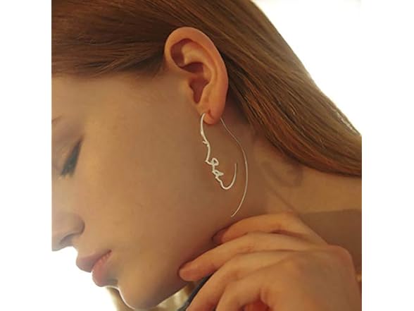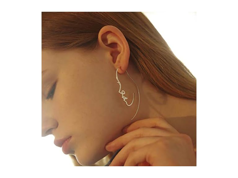 - (1) DoubleNine Hollow Face Earrings Abstract Dangle Earrings Minimalist Gold-Plated Jewelry Accessories for Women
