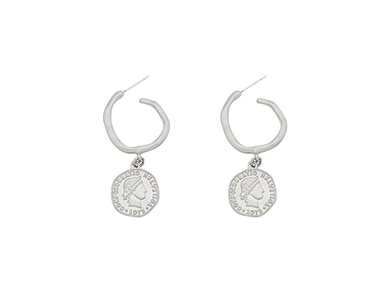 - (1) DOUBNINE Gold Coin Earrings Elizabeth Portrait Hoop Dangle Drop Disc Minimalist Women Jewelry Gift for Her (silver)