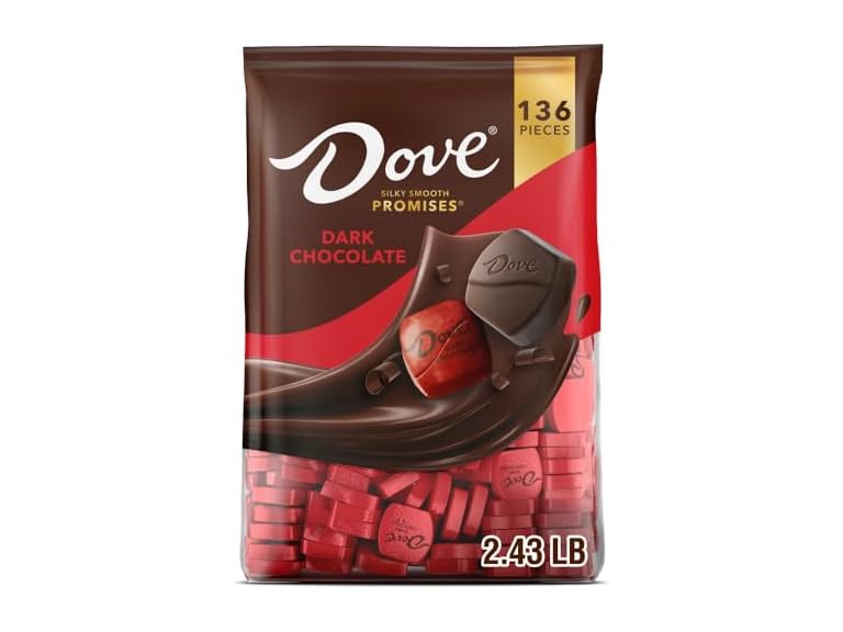 - (1) DOVE PROMISES Dark Chocolate Candy, 136 Ct Bulk Bag