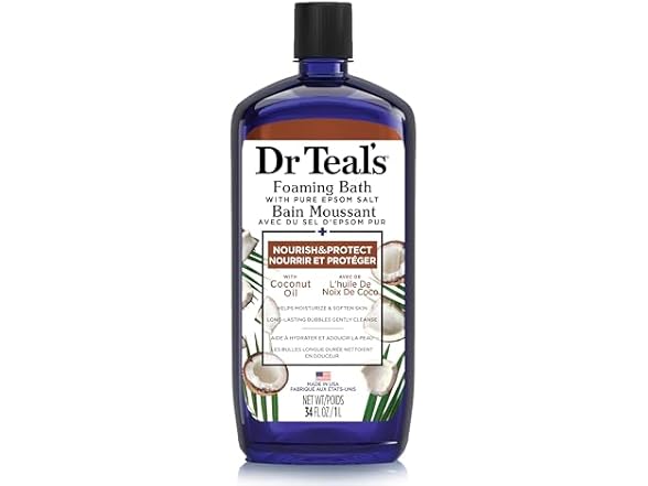 - Dr Teal's Nourish & Protect with Coconut Oil Foaming Bath utilizes essential oils to calm the senses and help provide relief from stress.