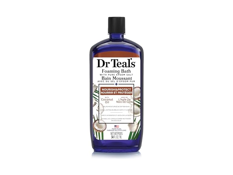 - (1) Dr. Teal's Coconut Oil Foaming Bath with Pure Epsom Salt (1 Bottle, 34 oz) - Essential Oils Nourish & Protect your Skin - Relieve Stress & Revitalize Tired, Achy Muscles at Home - Long Lasting Bubbles