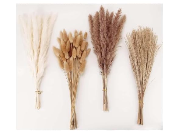 - 【Complete Pampas Grass Set】: Includes 100 pieces total; featuring 50 small pampas grass, 20 reed grass, 15 white pompas grass branches, and 15 brown pompass grass branches for versatile arrangements; ideal for creating stunning displays