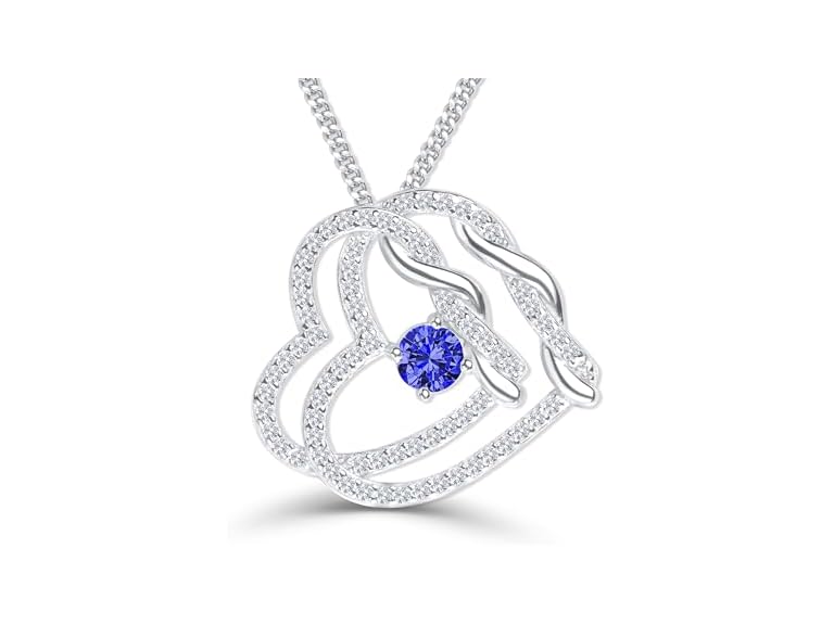 - (1) DUAL DIVINE Platinum Plated Sterling Silver Heart Necklace Gift for Women Mom Necklace with Heart Pendant Birthstone Necklace for Women Gift for Her (09-Sep-Sapphire Blue)