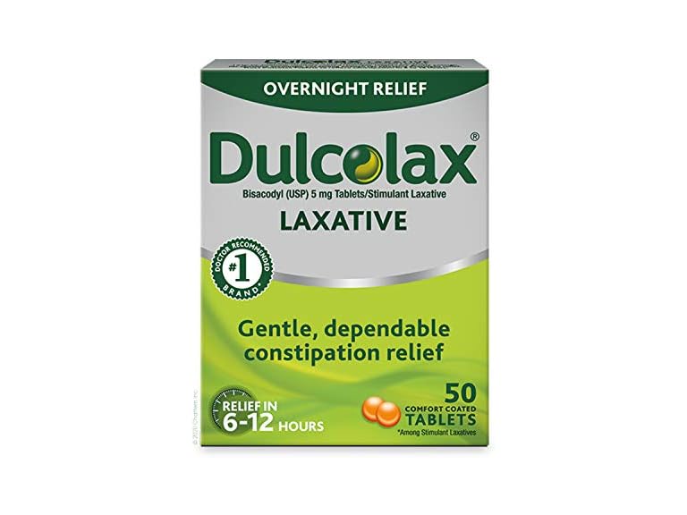 - Dulcolax Overnight Relief Laxative for Gentle Constipation Relief, Bisacodyl 5 mg Tablets, 50 Countā