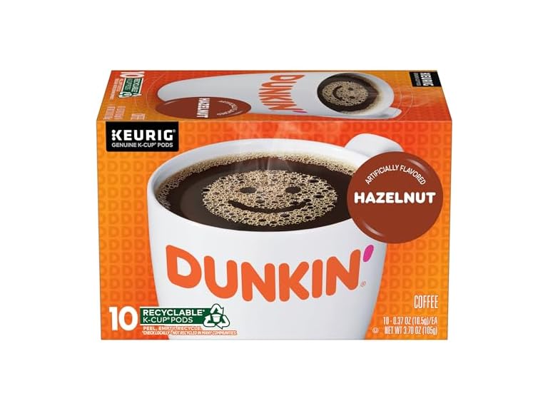 - Dunkin' Hazelnut Flavored Coffee, 10 Keurig K-Cup Pods