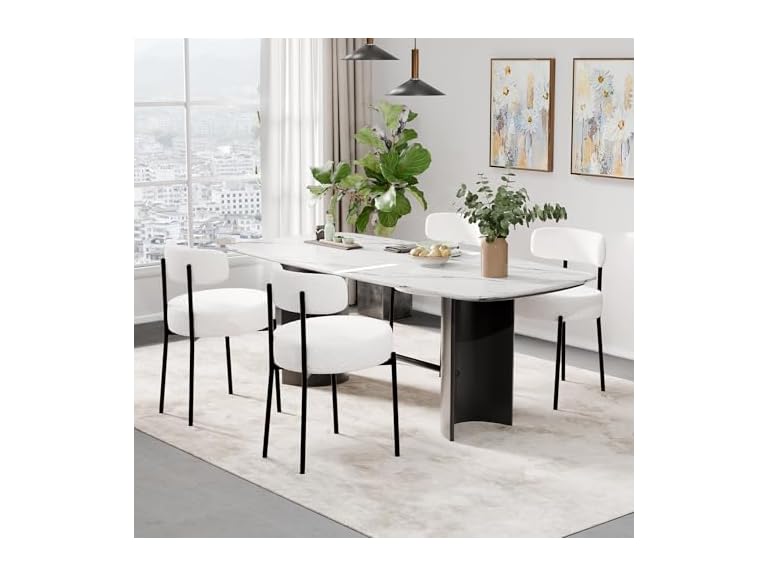 - 【Stable & Sturdy】The sherpa dining room chair is made of matte black metal legs, which are sturdy and firm, and the exquisite design adds a touch of elegance to your dining room or living room; the bottom of the legs are equipped with swivel feet, which can be increase friction resistance for safety and prevent the floor from being scratched.