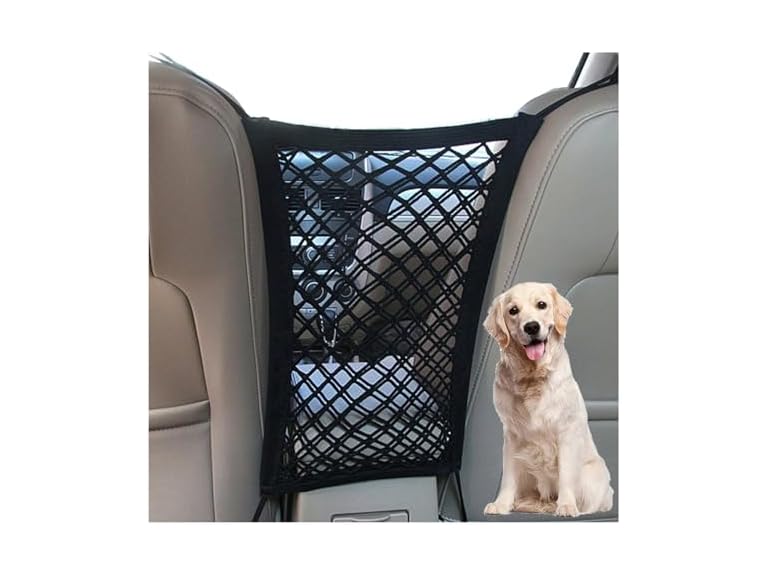 - (1) DYKESON Dog Car Net Barrier Pet Barrier with Car Mesh Organizer for Dog & Child, Safety Divider with Storage Pouch, Easy Install for Cars & SUVs