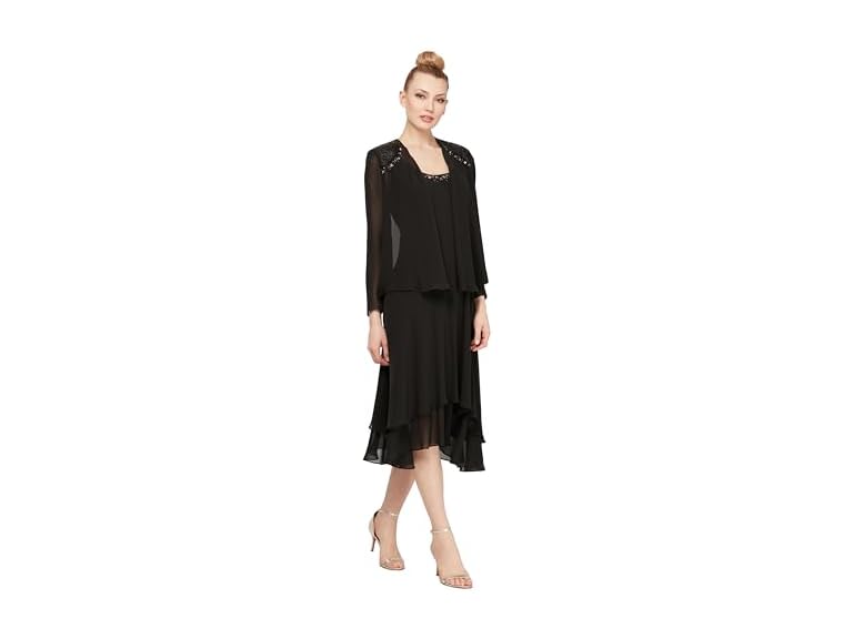 - (1) S.L. Fashions Women's Mother of The Bride Dress with Embellished Neckline & Shoulder, Wedding Guest (Petite and Regular Sizes), Black, 14
