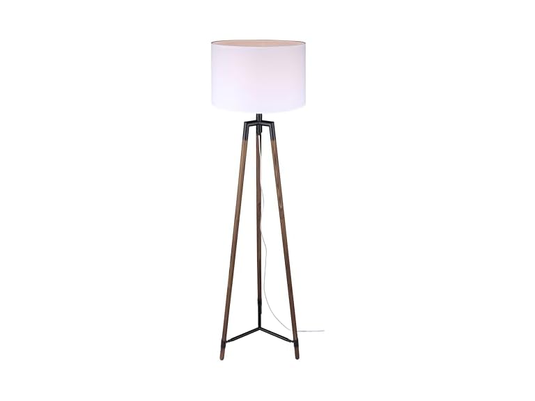 - (1) Cameram 1 Light Floor Lamp with Matte Black with Faux Woodgrain Finish and White Shade