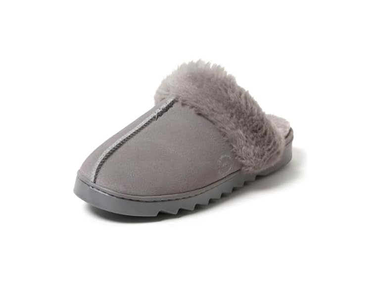 - (1) Dearfoams Women's Suede Fuzzy Soft Memory Foam Indoor Outdoor Helena Scuff Slipper, Grey, 6