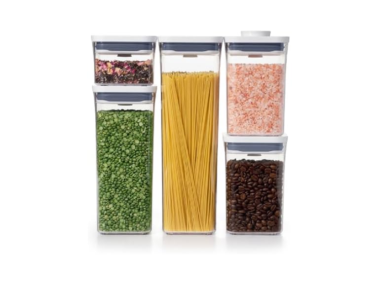 - OXO Good Grips 5-Piece POP Container Set is airtight, stackable, space-efficient and now dishwasher safe, making it easy to keep your dry foods fresh and your pantry organized