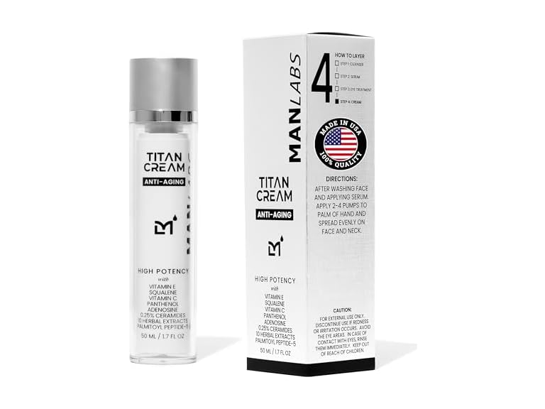 (1) Titan Anti-Aging Mens Face Cream – Mens Face Moisturizer – For Men, Face Lotion – Men, Skin Care – Tighten, Tone, Revitalize – Ceramides, Vitamin C & E, Squalane – All Skin Types – Unscented