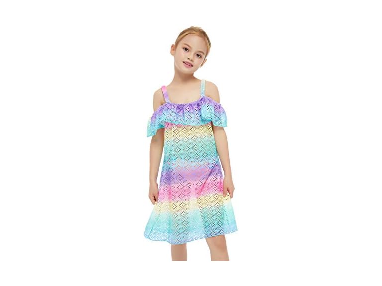 - (1) Jimmy Bahamas Cover-ups for Girls Swimwear Off Shoulder Ruffled Hollow Beach Dress Cover Up for Kids (Multicolor, 12)