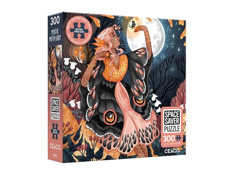 - (1) Ceaco – Mystic Moth Lady - 300 Piece Jigsaw Space Saver Puzzle – Puzzles for Smaller Spaces and Surfaces