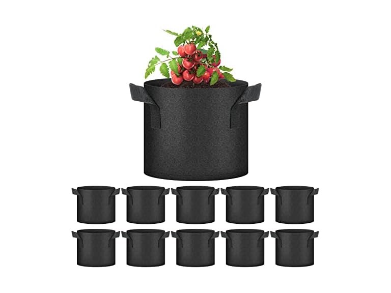 - (1) YSSOA 10-Pack 3 Gallon Grow Bags, Tomoato Plant Pots with Handles, Aeration Nonwoven Fabric, Heavy Duty Gardening Planter for Vegetable, Fruits and Flowers, Black