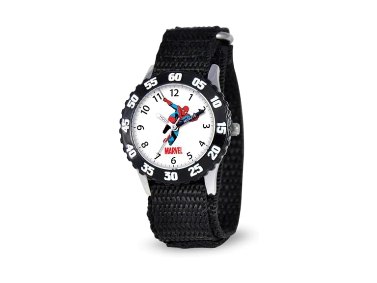 - (1) Marvel Spider-Man Kids' Bezel Stainless Steel Time Teacher Analog Quartz Nylon Strap Watch