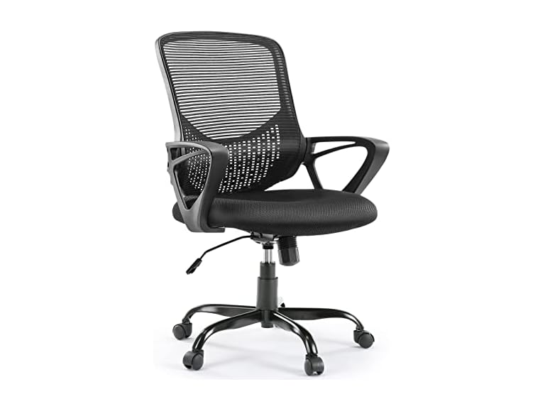 - (1) AFO Home Office Chair Mid Ergonomic Lumbar Support and Armrests, Adjustable Height, Breathable Mesh Back, 360 Degree Swirl, Rocking Mode, Black