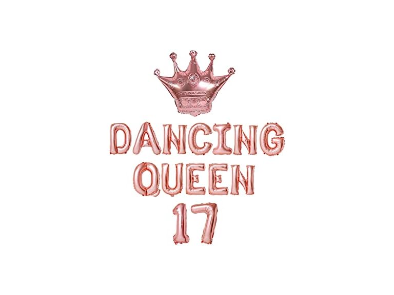 - (1) ALUKIKI 18" Rose Gold Dancing Queen 17 balloons Princess Balloon Banner 17th Birthday Party Balloons 17 Birthday Decorations Supplies