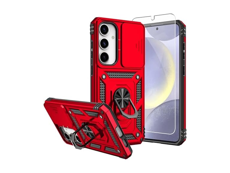 - 【360° Rotating Kickstand Ring】Equipped with premium metal ring kickstand, designed for galaxy s24 plus case with screen protector offers multiple adjustable angles. Built in kickstand holds your phone at optimal viewing angles for movies & videos and ase hands when watching films, playing games or online chatting.