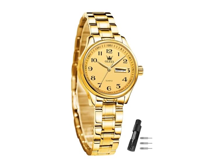 - 【Luxury Watches for Women】The women's watch comes with an OLEVS brand gift set box, providingadjustment tools. The gold watch is the best gift choice for yourself/family/loved ones/friends, suitable for business/leisure activities.
