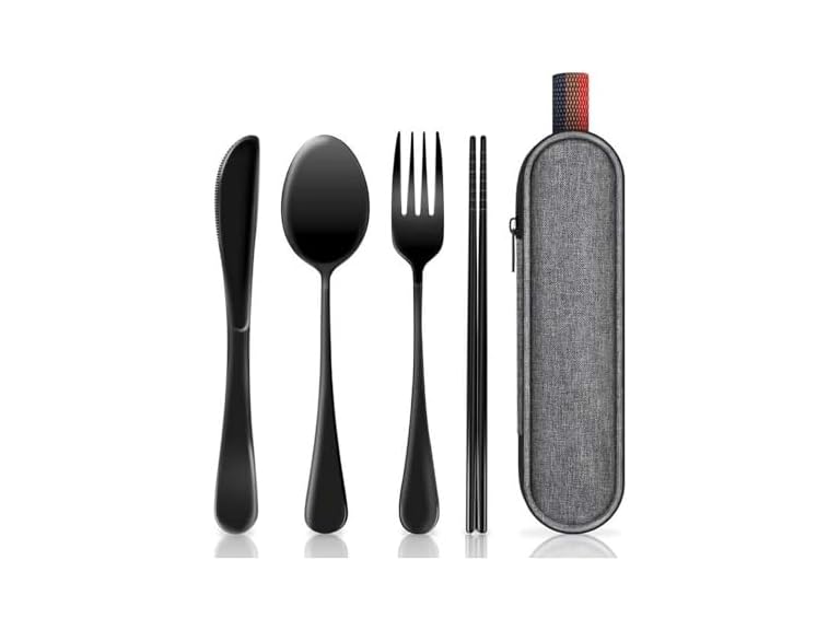 - (1) Generic Travel Utensils Set with Case, Portable Cutlery for Work, Stainless Steel Reusable Silverware, Camping Picnic Flatware, Lunch Box Kit for Adults, Black
