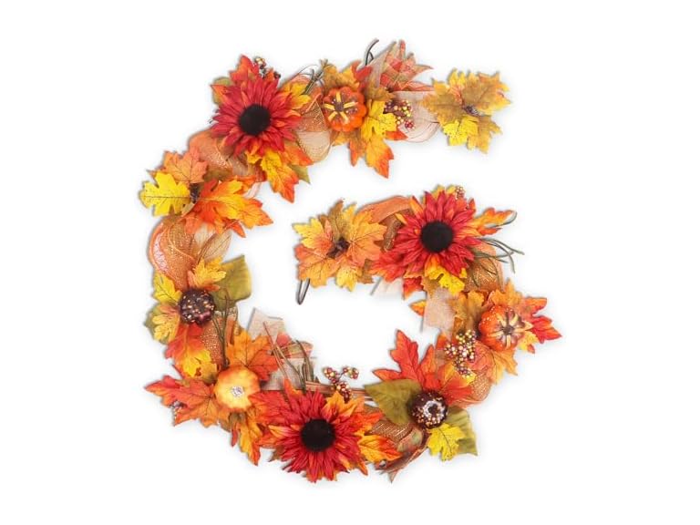 - (1) Fall Garland for Mantle, 6FT Fall Leaves Pumpkin Garland with Berries/Ribbon