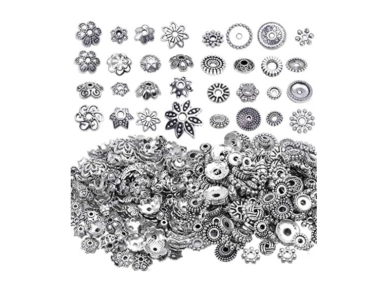 - QUANTITY -- Package includes 50g antique silver spacer beads, 50g antique silver flower bead caps, and styles randomly.