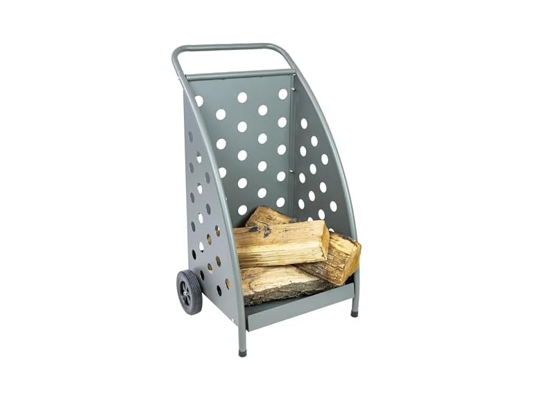 - STURDY CONSTRUCTION: This durable rolling firewood cart is made from dependable steel for lasting strength season after season. It also features a stylish gray powder-coated finish.