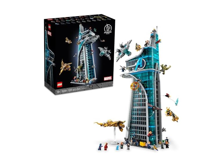 - (1) LEGO Marvel Avengers Tower Building Kit, Detailed Recreation of The Iconic HQ Featuring Classic Movie Scenes, 31 Figures and Authentic Accessories, Gift for Marvel Fans and Model-Makers, 76269
