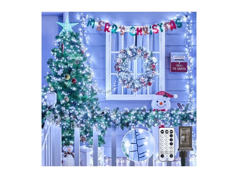 - 【IP44 Waterproof Christmas Outdoor Lights】The Christmas fairy lights are designed with an IP44 waterproof rating, making them suitable for both indoor and outdoor use. They are the perfect choice for adding a touch of festive charm to your Christmas decorations. Hang them around windows, stairs, doorframes, banisters, eaves, atop cabinets, walls, gardens, or gazebos to create a standout feature in your Christmas display