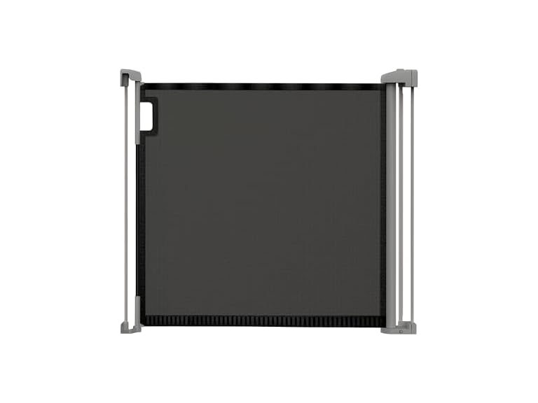 - When retracted, gate stays rolled up in its holder neatly out of sight, taking up much less space than a standard safety gate