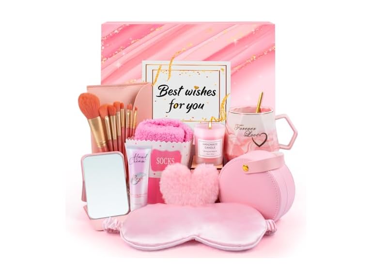 - (1) RIYA Gifts for Women, 10pcs Unique Birthday Gifts for Women, Mom, Wife, Girlfriend, Sister, Her, Best Friend,Colleague Gift Basket-Pink